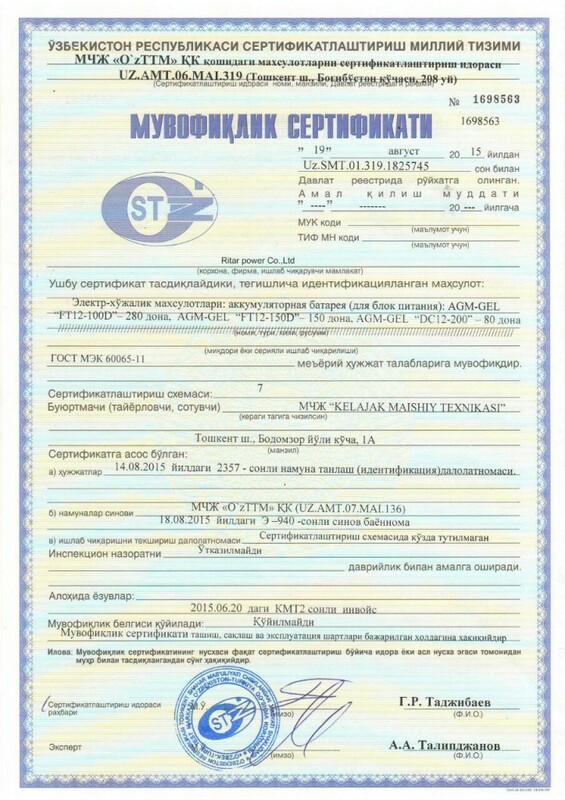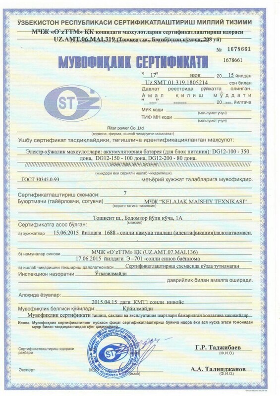 Гелевые Аккумуляторы Ritar «DG 12V 100AH»